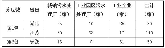 此次招標(biāo)中,廢水監(jiān)測技術(shù)服務(wù)項目包括工業(yè)廢水、城鎮(zhèn)污水等,涉及湖北、江蘇、安徽3個省的城鎮(zhèn)污水處理廠、工業(yè)園區(qū)污水處理廠、工業(yè)企業(yè)的廢水監(jiān)測技術(shù)服務(wù),共分2包:湖北、江蘇為第1包,安徽為第2包。
