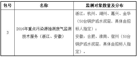 廢氣監(jiān)測技術(shù)服務(wù)項目包括浙江、安徽2個省的工業(yè)鍋爐和水泥窯爐的廢氣監(jiān)測技術(shù)服務(wù),共分1個包。